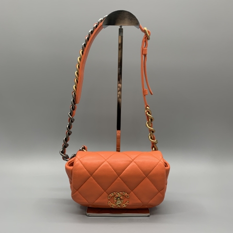 CHANEL BAG CHANEL19 LAMBSKIN WALLET ON CHAIN ORANGE NO.29