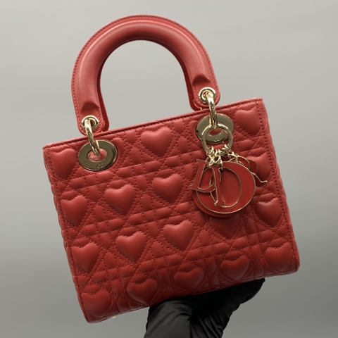 DIOR BAG LADY CANNAGE HEART SMALL RED 20CM